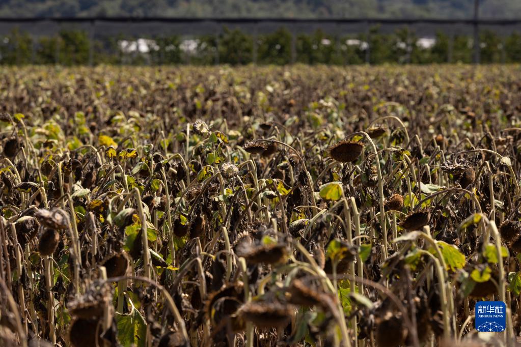 8月16日,在斯洛文尼亞戈里什卡區新戈里察市的喀斯特鎮,向日葵因干旱枯萎。