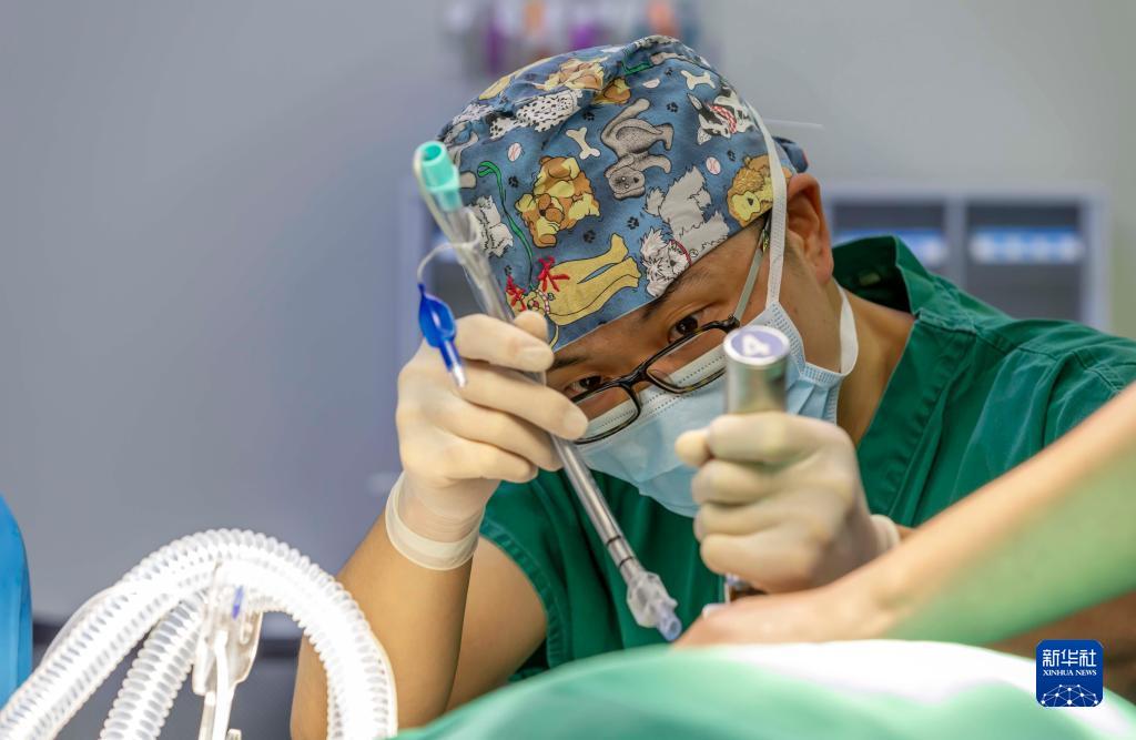 8月18日,在貴州省黔西市人民醫院,麻醉科醫生為全麻患者進行氣管插管。