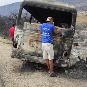 8月18日,在阿爾及利亞泰賴夫省,車輛被森林火災焚毀。