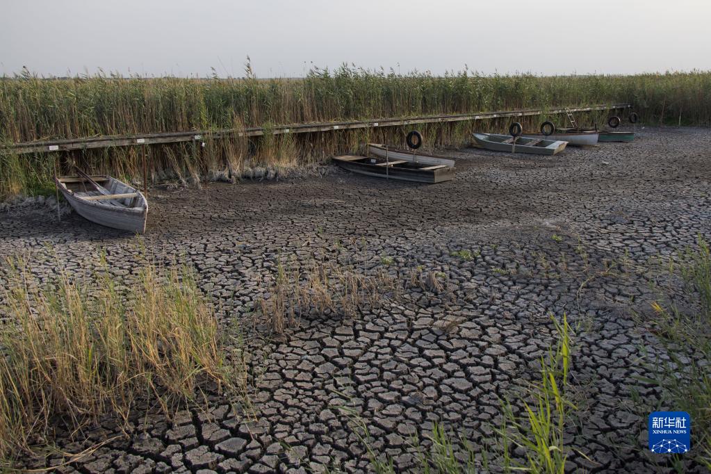 這是8月18日在匈牙利帕科茲德附近拍攝的局部干涸的韋倫采湖。