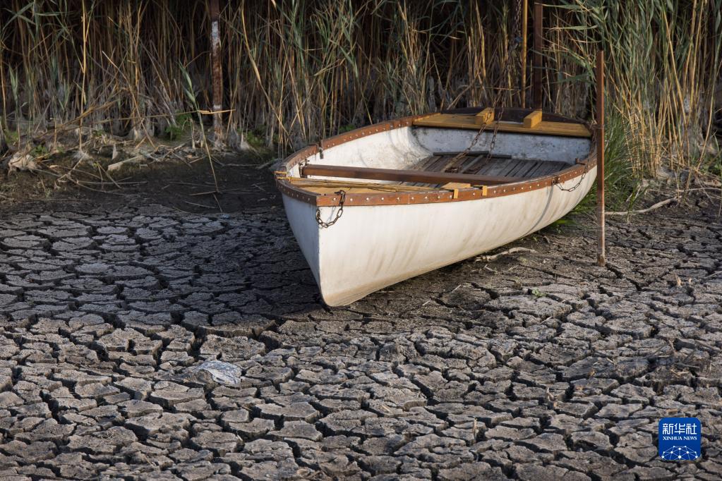 這是8月18日在匈牙利帕科茲德附近拍攝的局部干涸的韋倫采湖。