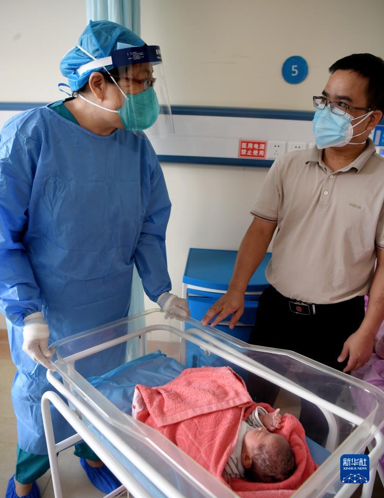 8月19日,海南三亞市婦女兒童醫(yī)院婦產(chǎn)科主任醫(yī)師田秀娟(左)在住院部了解新生兒健康狀況。
