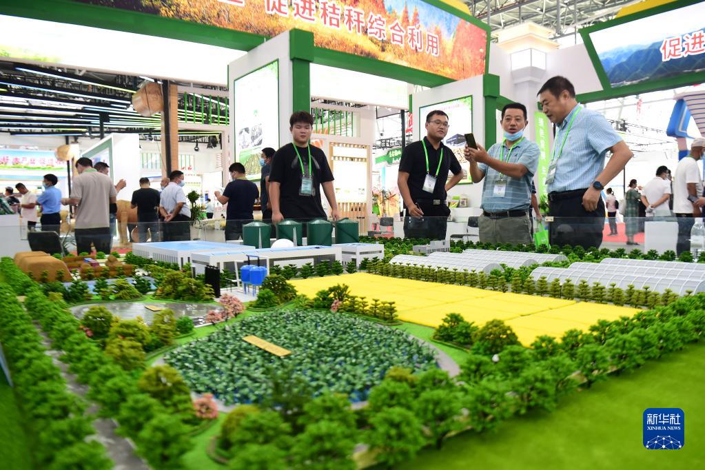 8月19日,與會者在2022安徽秸稈暨畜禽養殖廢棄物綜合利用產業博覽會上觀看秸稈及畜禽養殖廢棄物綜合利用模型。