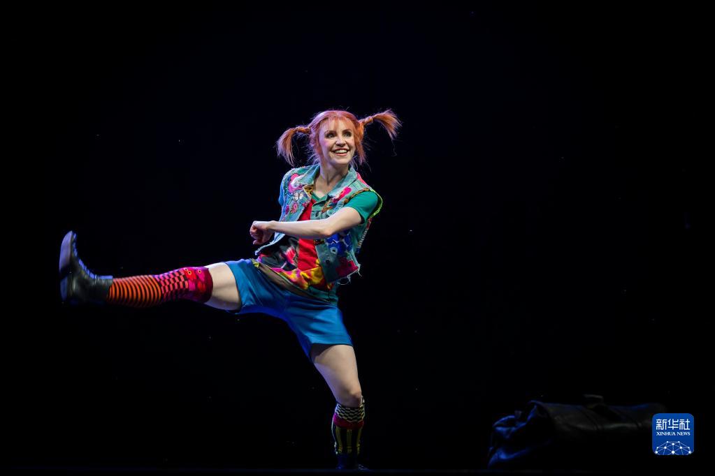 8月18日,芬蘭國家芭蕾舞團在芬蘭赫爾辛基街頭為觀眾表演《長襪子皮皮》。
