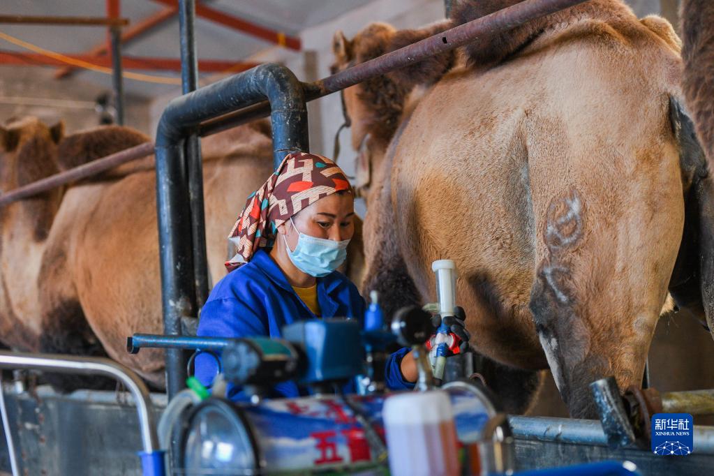 8月18日,蘇尼特右旗雙峰駝繁育養殖基地職工蘇布登準備擠駝奶。
