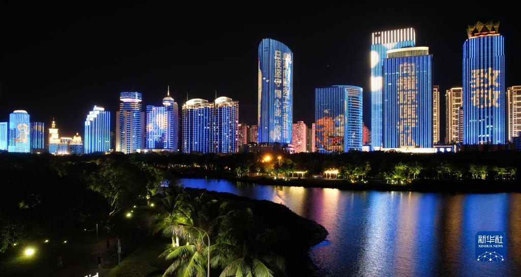 當日是第五個中國醫師節,海口市組織開展中國醫師節主題燈光秀,向醫務人員致敬。