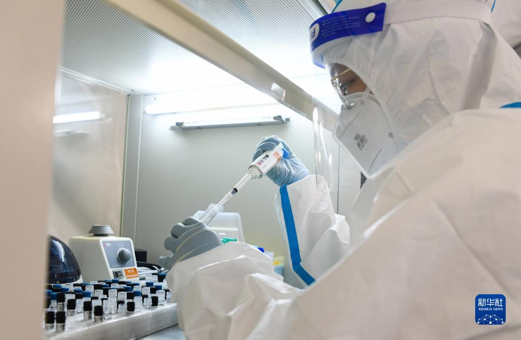 8月16日,在海南陵水黎族自治縣體育館氣膜實驗室,山東省醫療隊醫務人員在工作。