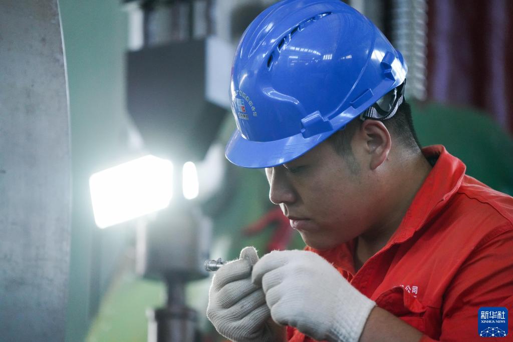 8月20日,在哈電集團哈爾濱電機廠有限責任公司的車間,技術工人在進行質檢作業。新華社記者 王松 攝
