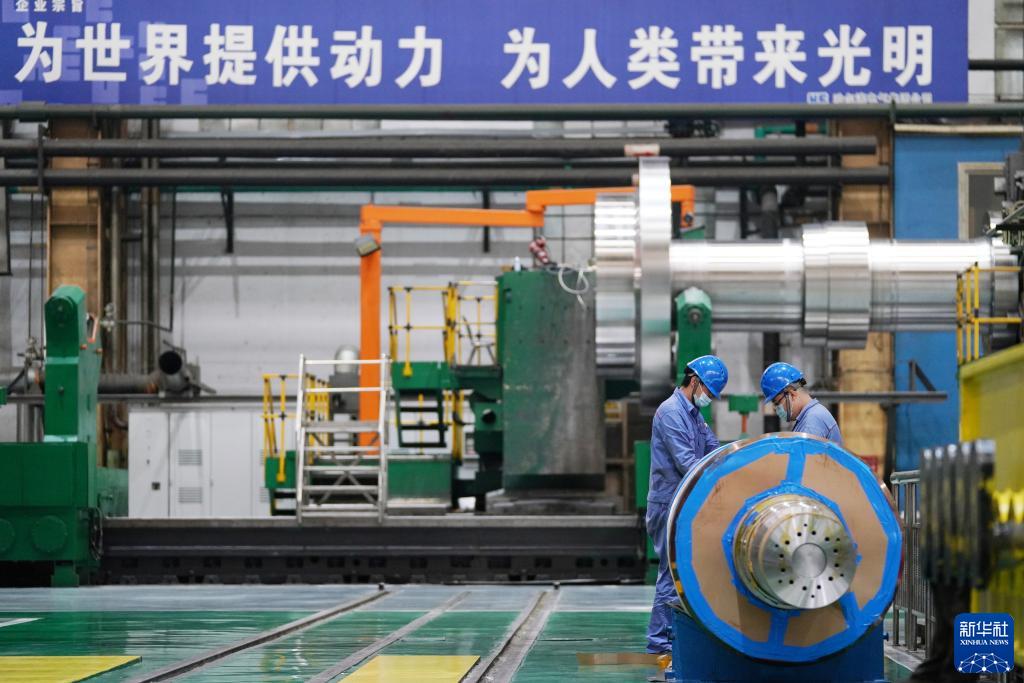 8月19日,在哈電集團哈爾濱電機廠有限責任公司的車間,工人在生產作業。新華社記者 王建威 攝