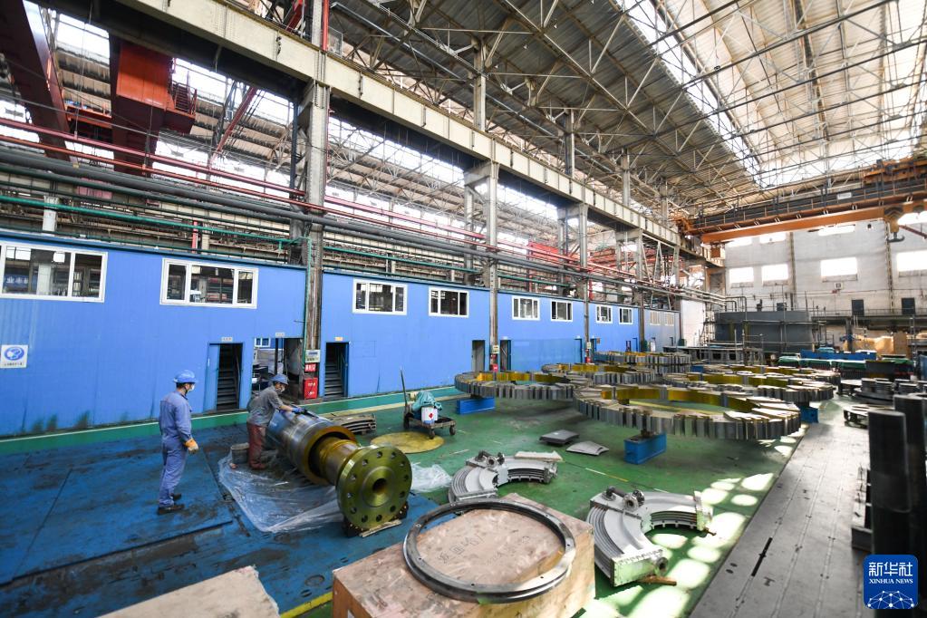 8月20日,在哈電集團哈爾濱電機廠有限責任公司的車間,工人在生產作業。新華社記者 王松 攝