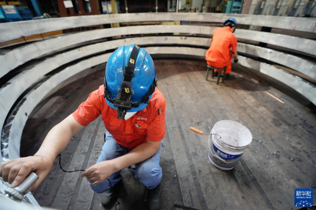 8月19日,在哈電集團哈爾濱電機廠有限責任公司的車間,工人在生產作業。新華社記者 王建威 攝