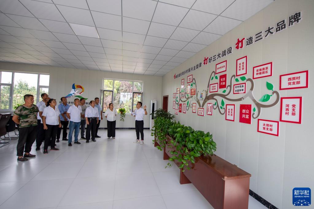碩士宣講團成員薛國進(右一)在任村鄉東卜村進行宣講(8月19日攝)。