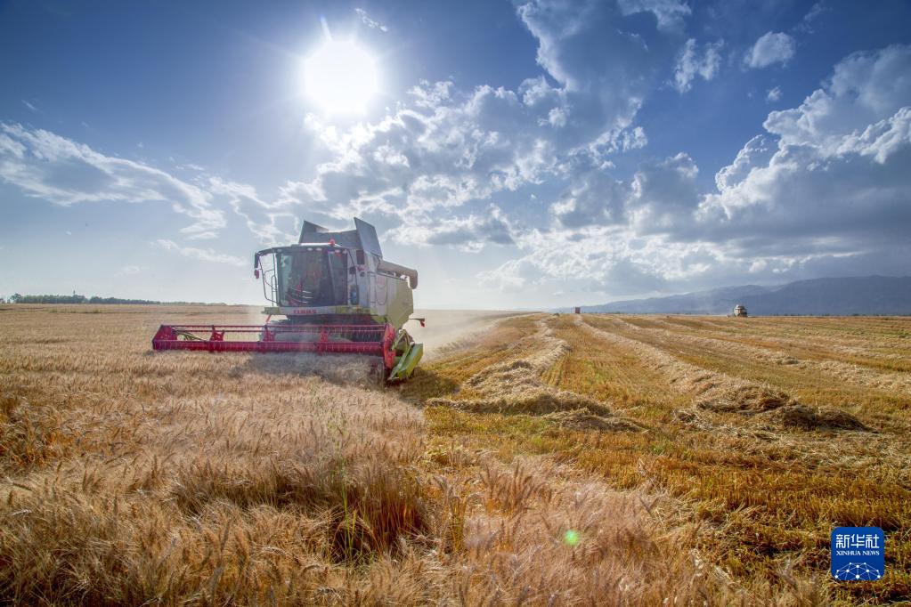 8月,新疆伊犁河谷上的昭蘇高原,連片的麥田陸續(xù)成熟,聯(lián)合收割機(jī)來(lái)回穿行忙碌,一片豐收景象。