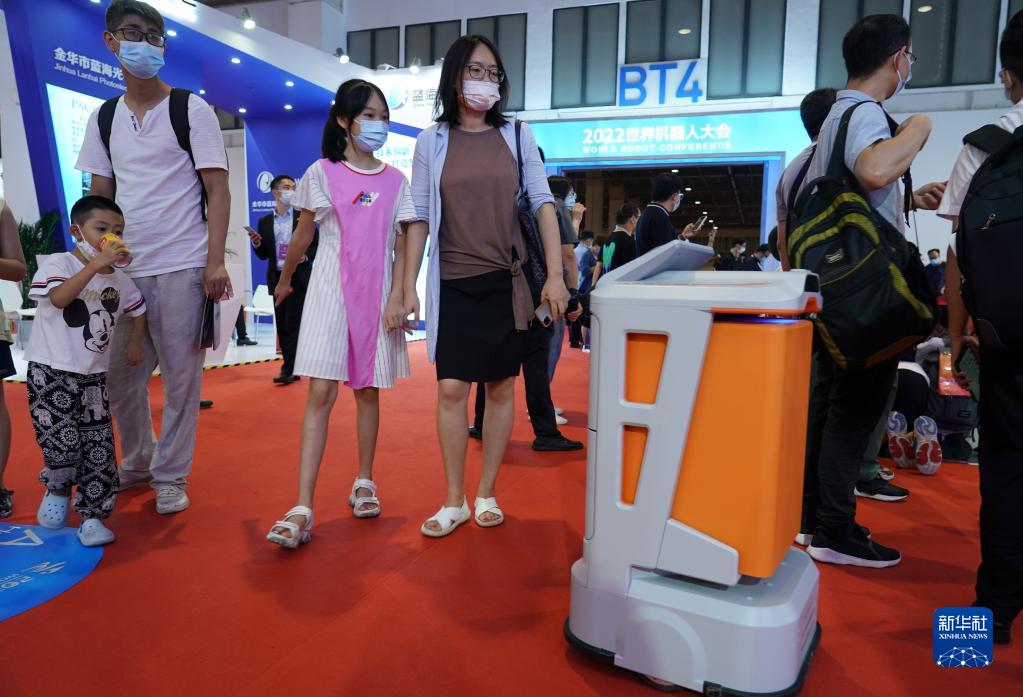 2022世界機器人大會于8月18日至21日在北京召開,2022世界機器人博覽會也同期舉行。博覽會現場的服務機器人吸引了不少參觀者的目光。