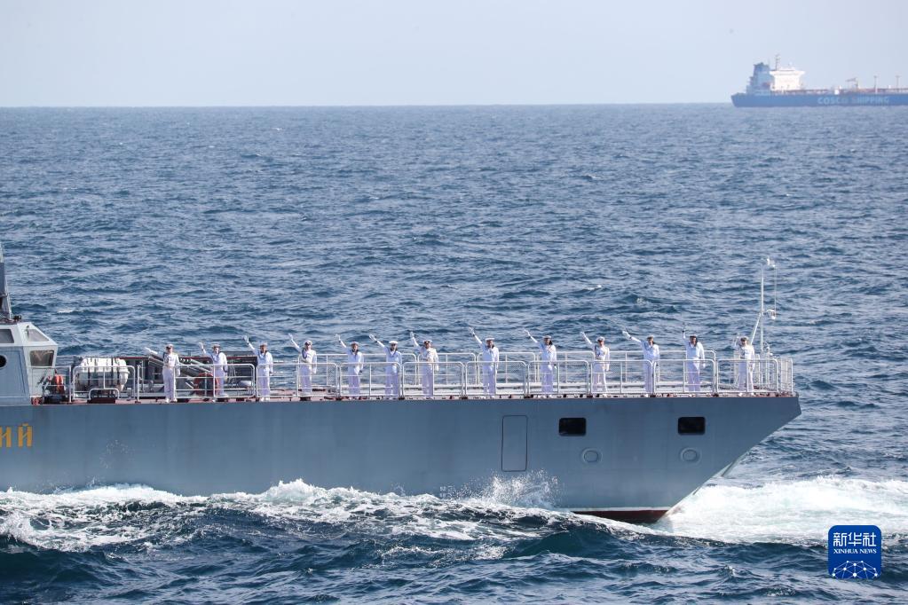 8月20日,“國際軍事比賽-2022”“海洋之杯”比賽在山東青島附近海域閉幕,俄方官兵揮手致意。新華社發(王光杰 攝)