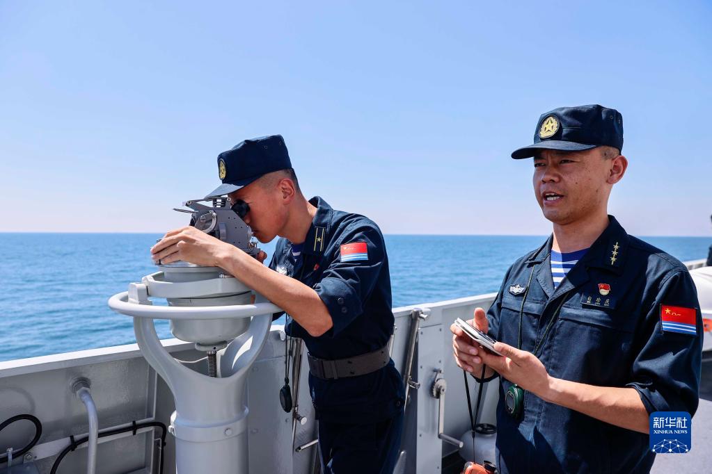 8月17日至20日,“國際軍事比賽-2022”“海洋之杯”比賽在山東青島附近海域進行。這是中方參賽艦臨沂艦官兵在測量靶標方位(8月17日攝)。新華社發(劉再耀 攝)