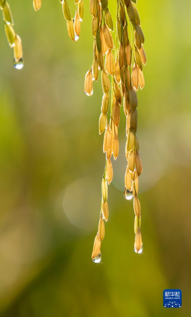 8月20日,在貴州省黔東南苗族侗族自治州從江縣剛邊壯族鄉(xiāng)良田村,顆粒飽滿的稻穗上掛著露珠。