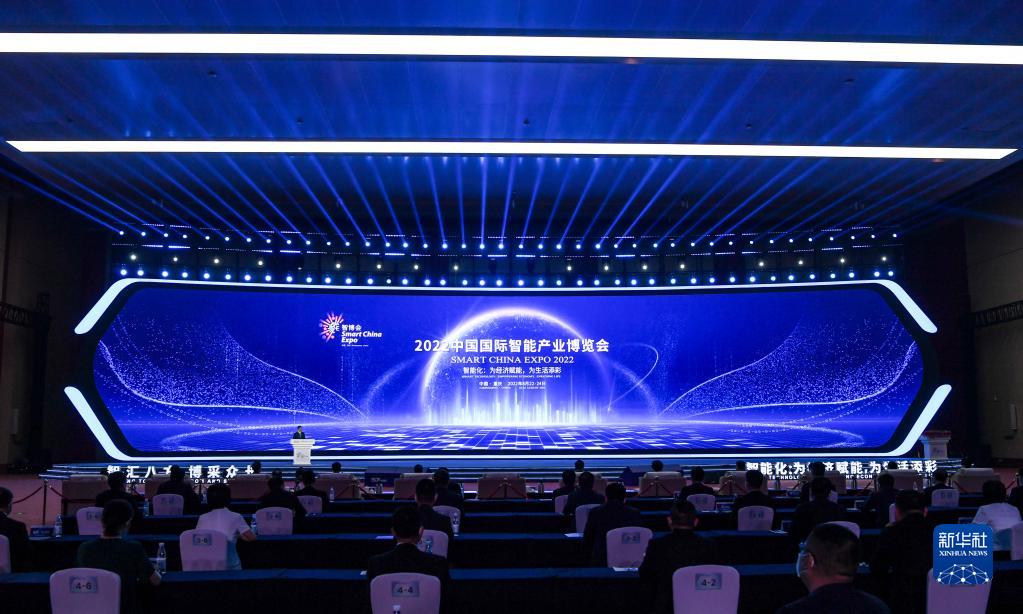 這是8月22日拍攝的2022中國國際智能產業博覽會開幕式現場。