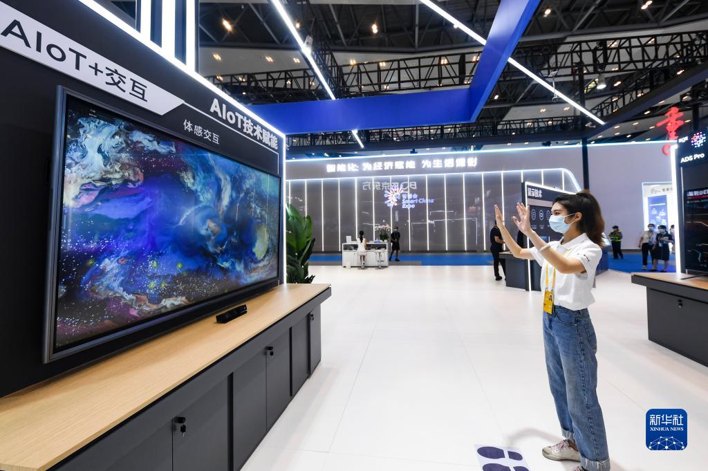 8月22日,記者在2022中國國際智能產業博覽會京東方展廳體驗體感交互應用。