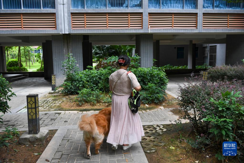 8月19日,在廣東惠州,張莉帶著滿悅回家。
