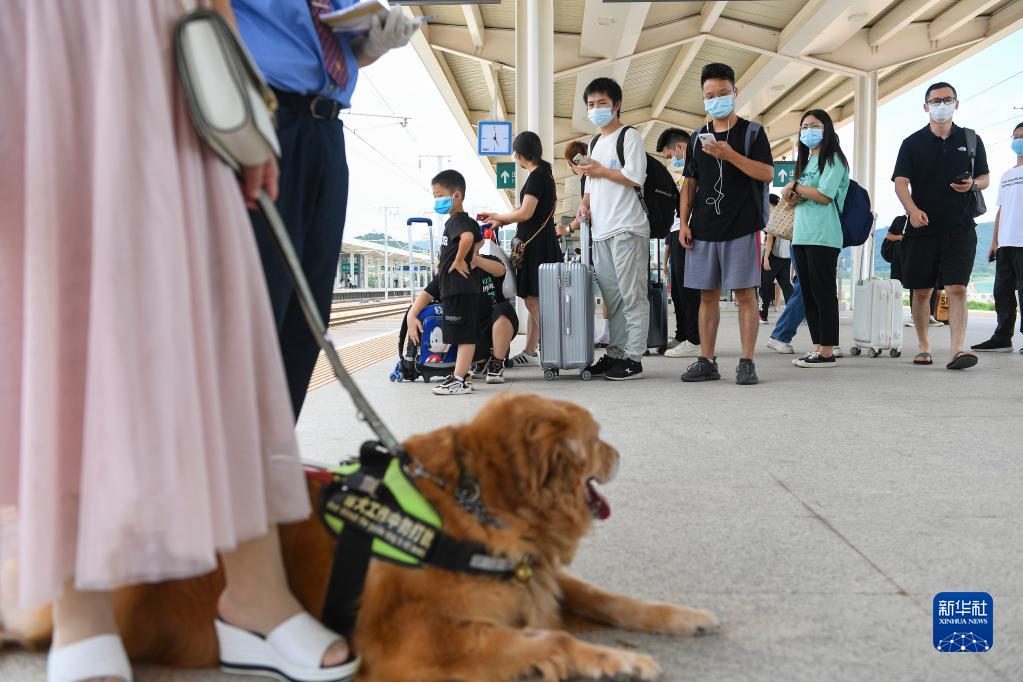 8月19日,在河源東站站臺,滿悅陪伴張莉等車。