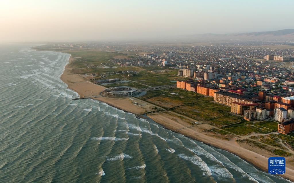 這是8月21日在俄羅斯達(dá)吉斯坦共和國馬哈奇卡拉市航拍的海濱風(fēng)光。新華社/塔斯社