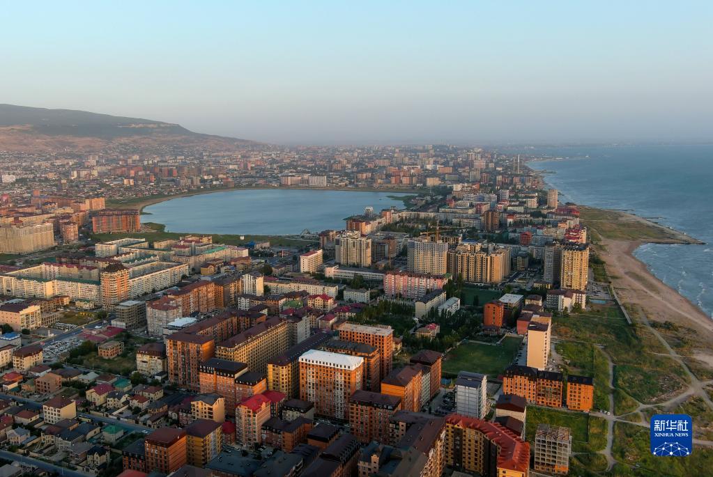 這是8月21日在俄羅斯達吉斯坦共和國馬哈奇卡拉市航拍的海濱風光。新華社/塔斯社
