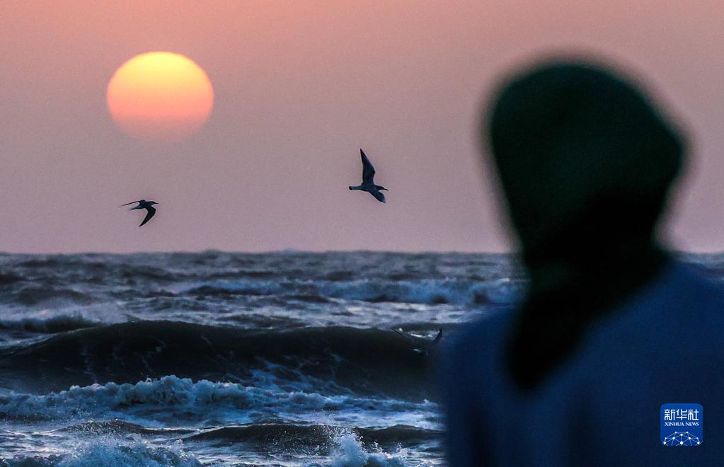 8月21日,海鳥在俄羅斯達吉斯坦共和國馬哈奇卡拉市的海濱飛翔。新華社/塔斯社