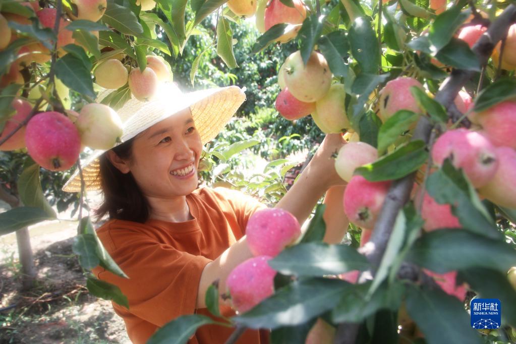 8月22日,河北省唐山市豐潤區石各莊鎮劉辛莊村果農在采摘海棠果。