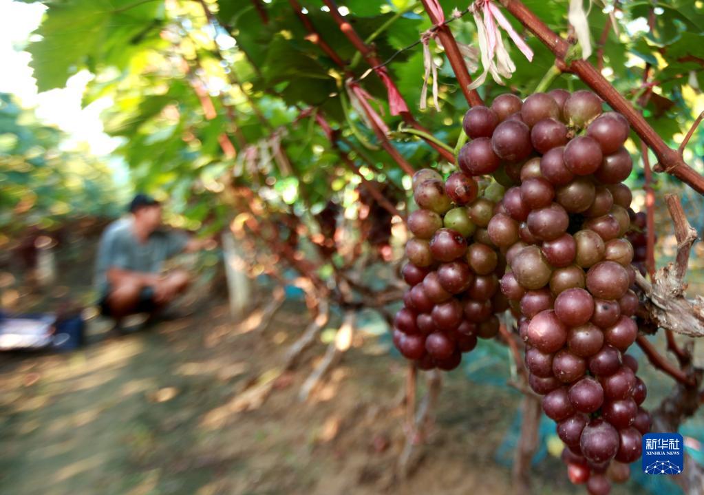 8月22日,在山東省臨沂市平邑縣地方鎮(zhèn)下坡村,村民在田間收獲葡萄。