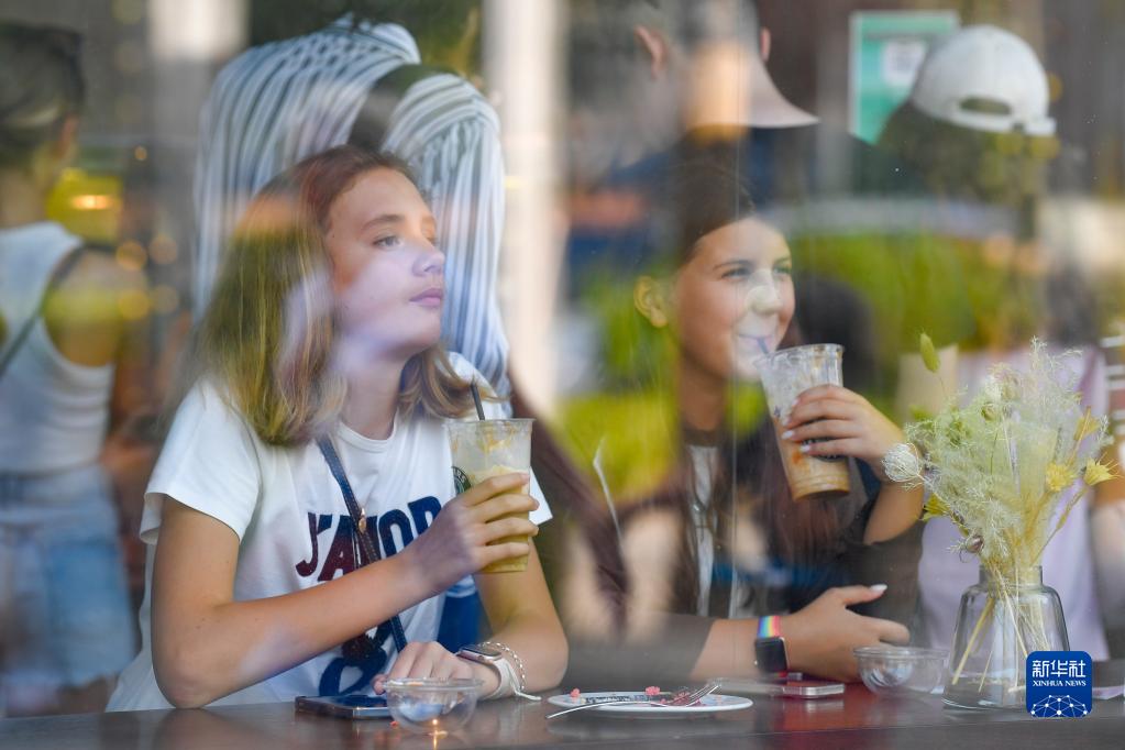 8月22日,人們?cè)诙砹_斯莫斯科一家“星咖啡”門店用餐。