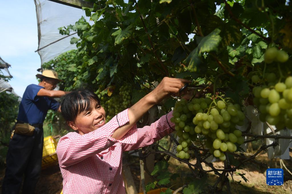廣西全州縣才灣鎮毛竹山村迎來葡萄收獲季,村民忙著采摘上市。近年來,毛竹山村大力發展葡萄產業,帶動周邊村民發展葡萄種植超過2000畝,助力群眾增收。