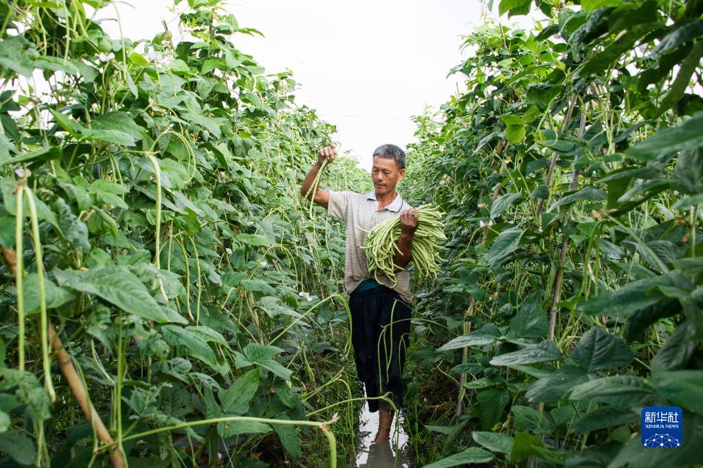 8月23日,廣西南寧市興寧區(qū)五塘鎮(zhèn)永寧村的農(nóng)民在采收豆角。