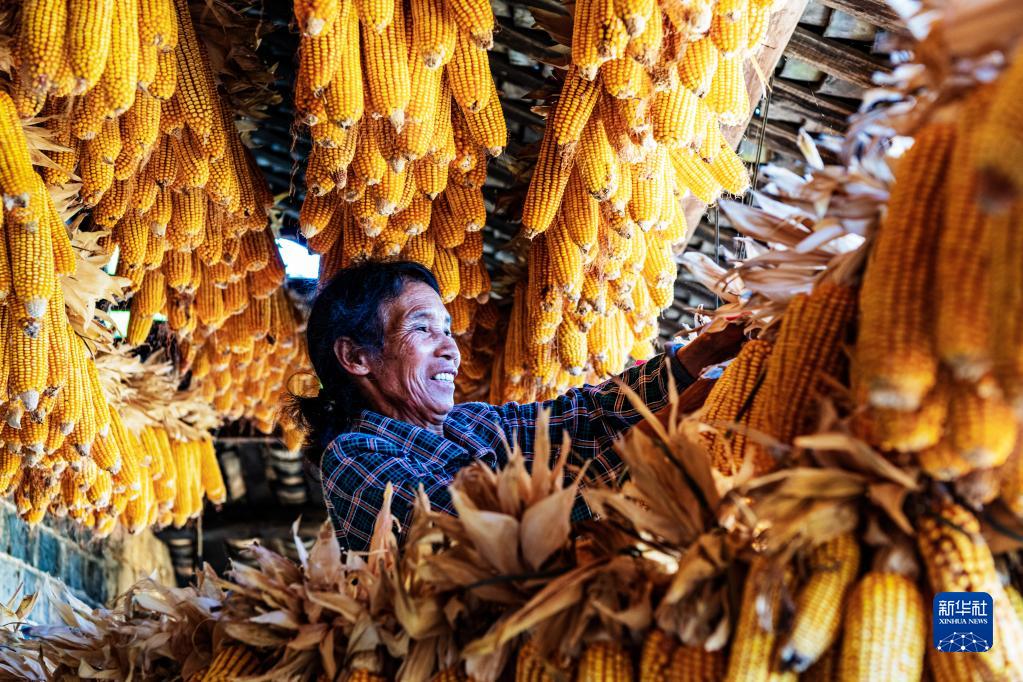 8月23日,湖南省東安縣大廟口鎮(zhèn)韭菜村村民在晾曬玉米。