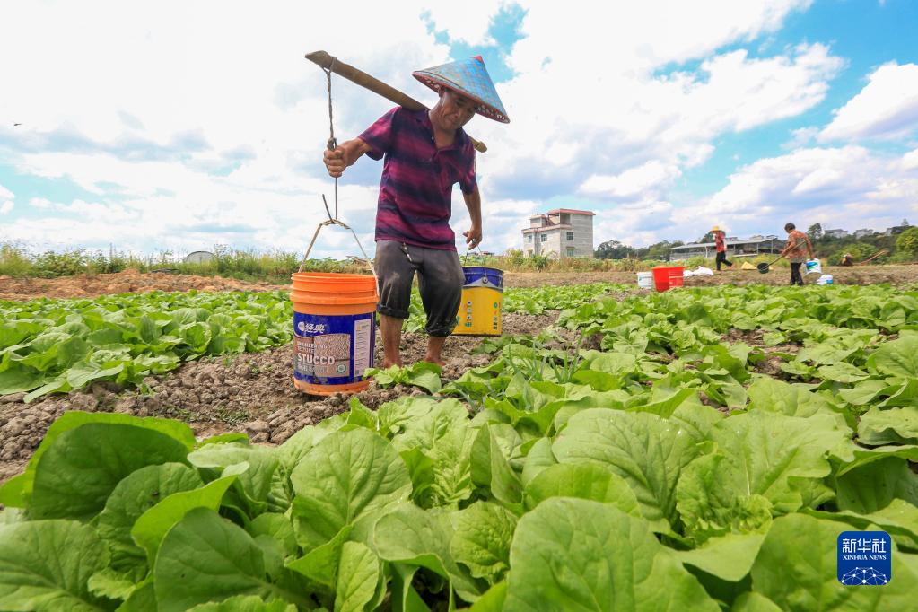 8月23日,在湖南省湘西土家族苗族自治州龍山縣,農民給蔬菜施肥。