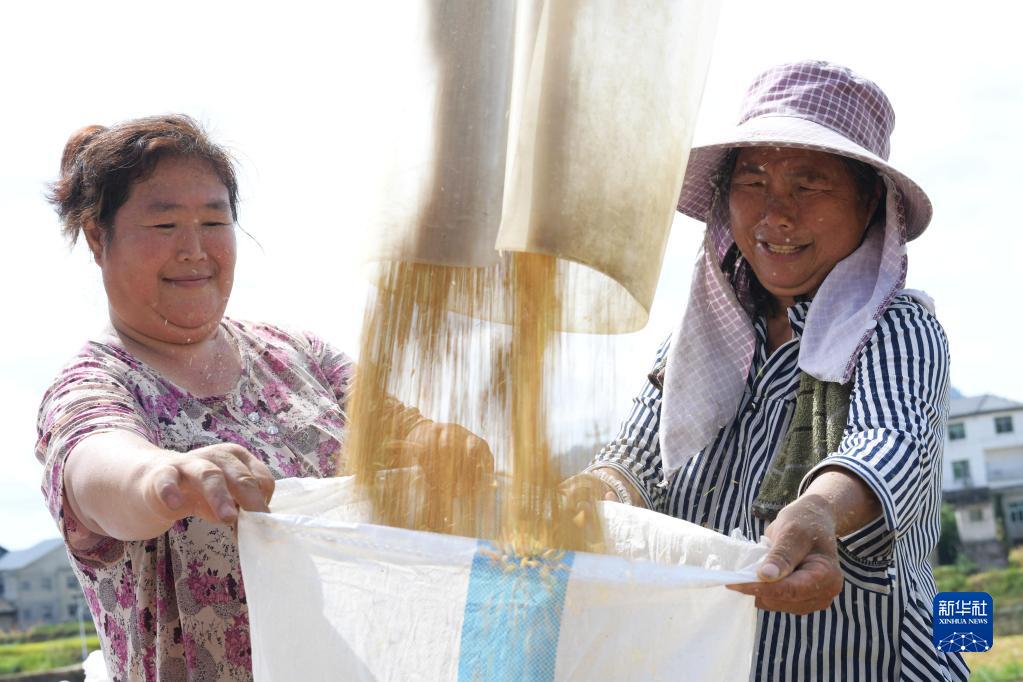 連日來,貴州省綏陽縣旺草鎮種植的水稻陸續進入成熟收割期,當地村民搶抓農時收割水稻,確保糧食顆粒歸倉。