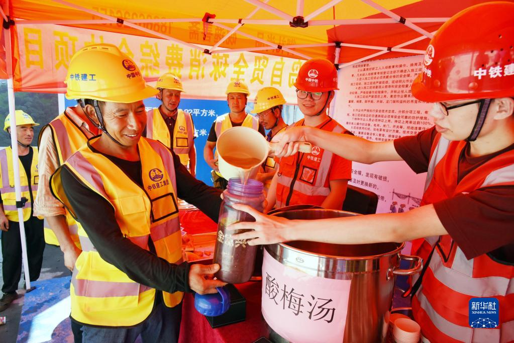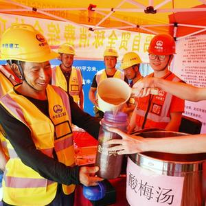 入夏以來,位于山東省青島市的中鐵建工青島各項目部在施工一線建起“清涼驛站”,為建設者送上飲料、防暑藥品等,關愛高溫下的勞動者。