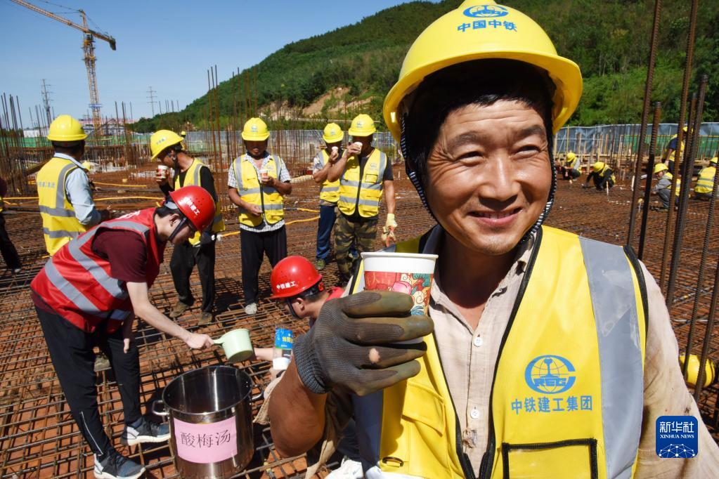 入夏以來,位于山東省青島市的中鐵建工青島各項(xiàng)目部在施工一線建起“清涼驛站”,為建設(shè)者送上飲料、防暑藥品等,關(guān)愛高溫下的勞動(dòng)者。