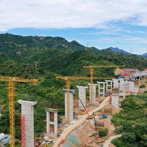 8月23日,在首都地區(qū)環(huán)線高速公路承德至平谷四頃地特大橋施工現(xiàn)場(chǎng),工人在進(jìn)行T梁架設(shè)。
