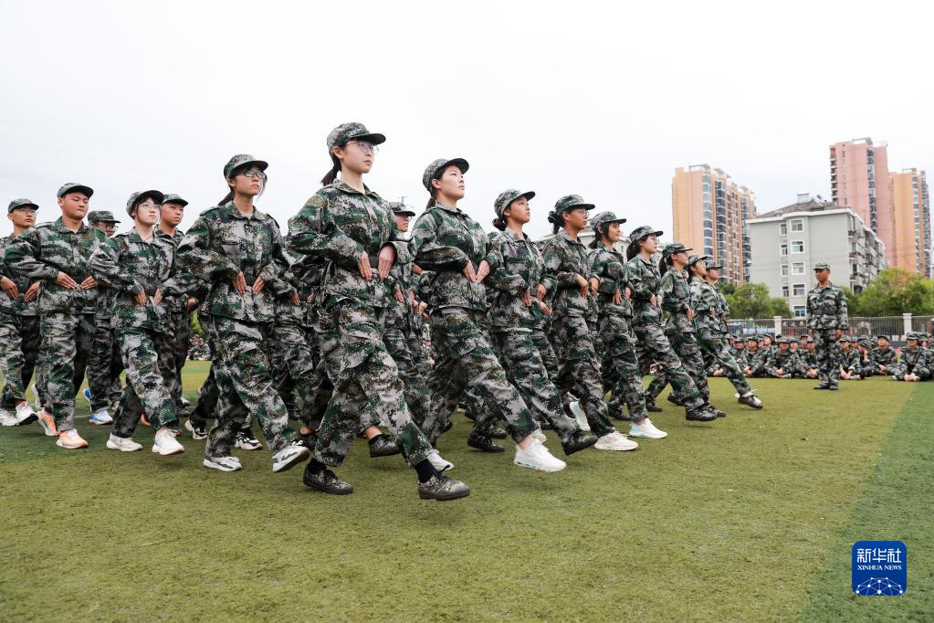 新學期來臨,安徽省淮北市的高中組織新生開展軍訓,鍛煉身體素質,磨礪意志品質。