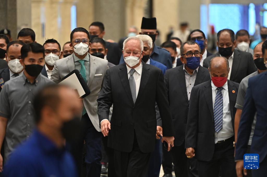 馬來西亞聯邦法院23日終審駁回前總理納吉布的上訴,裁定維持吉隆坡高等法院對其所涉多項貪腐罪名處以12年監禁和2.1億林吉特(約合3.2億元人民幣)罰款的判決。新華社發(張紋綜攝)