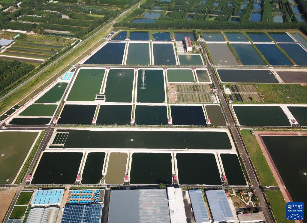 8月23日,山東省微山縣微山湖現(xiàn)代漁業(yè)產(chǎn)業(yè)園的生態(tài)魚(yú)塘(無(wú)人機(jī)照片)。
