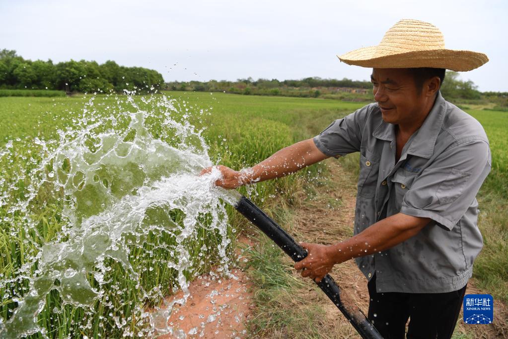 8月24日,肥西縣花崗鎮(zhèn)八里社區(qū)種糧大戶張守勤利用剛打的水井灌溉水稻。