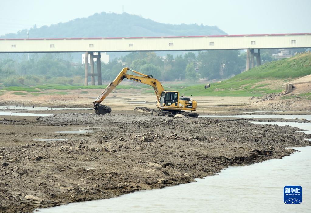 8月23日,在安徽省蕪湖市繁昌區(qū)荻港鎮(zhèn),水上挖掘機(jī)在河道里進(jìn)行清淤作業(yè),疏通引水渠道。