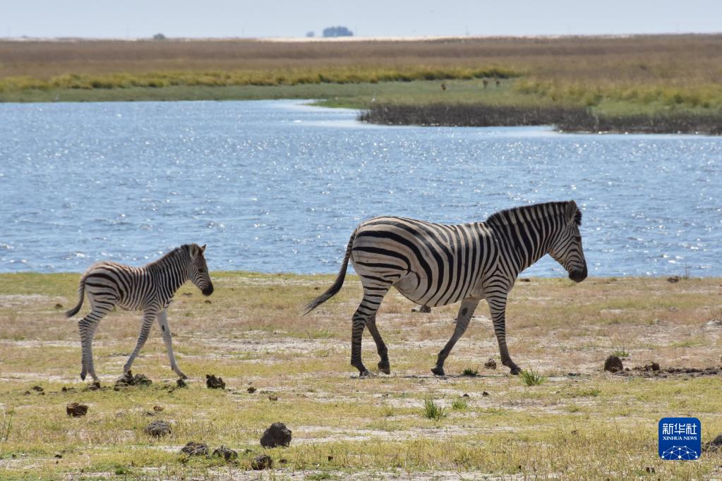 這是8月21日在博茨瓦納喬貝國家公園拍攝的斑馬。