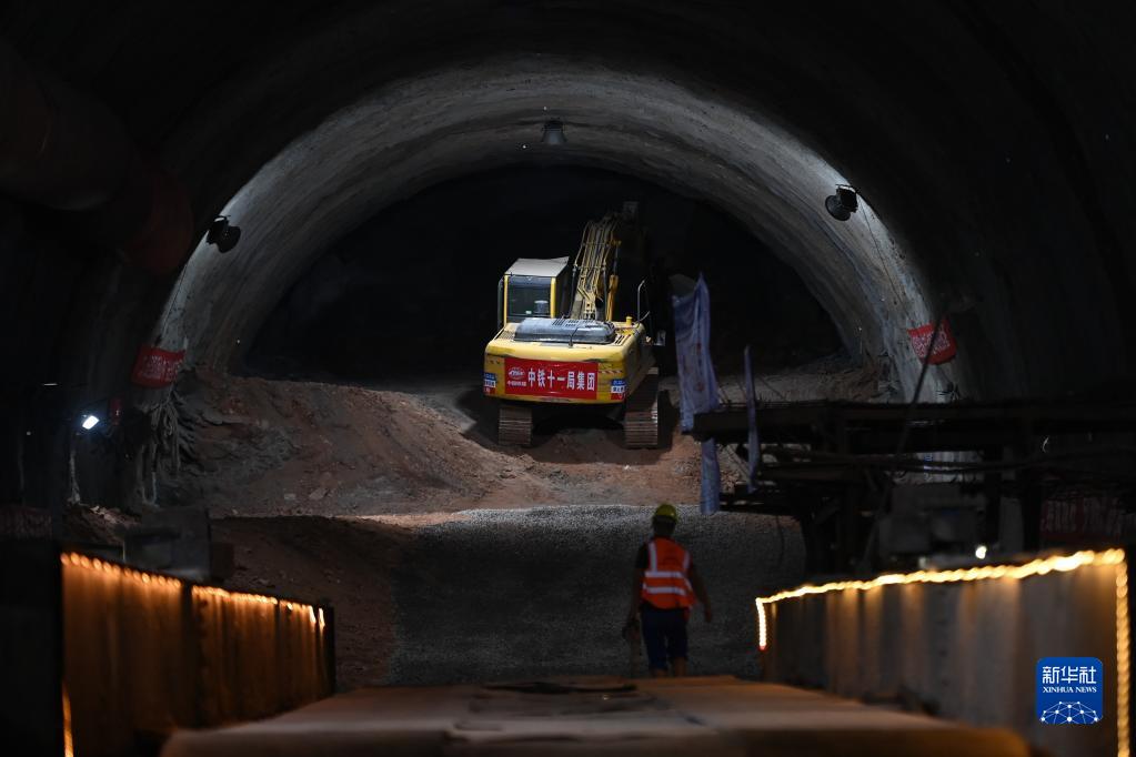 8月25日,中鐵十一局工作人員在金甬鐵路大莊隧道作業。