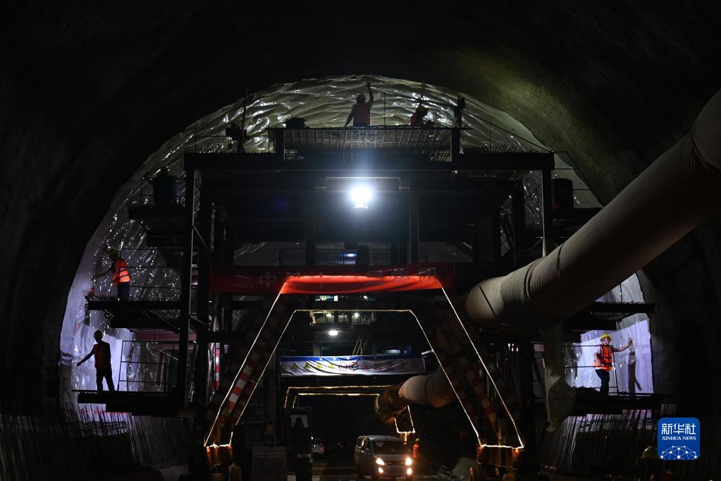 8月25日,中鐵十一局工作人員在金甬鐵路大莊隧道作業。