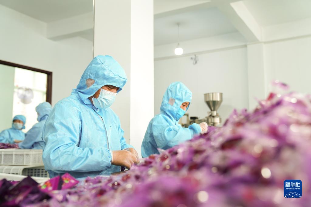 在黑龍江省大興安嶺地區(qū)加格達(dá)奇區(qū)一家山野珍品科技開發(fā)企業(yè),工人對林下綠色有機食品進(jìn)行加工作業(yè)(8月24日攝)。