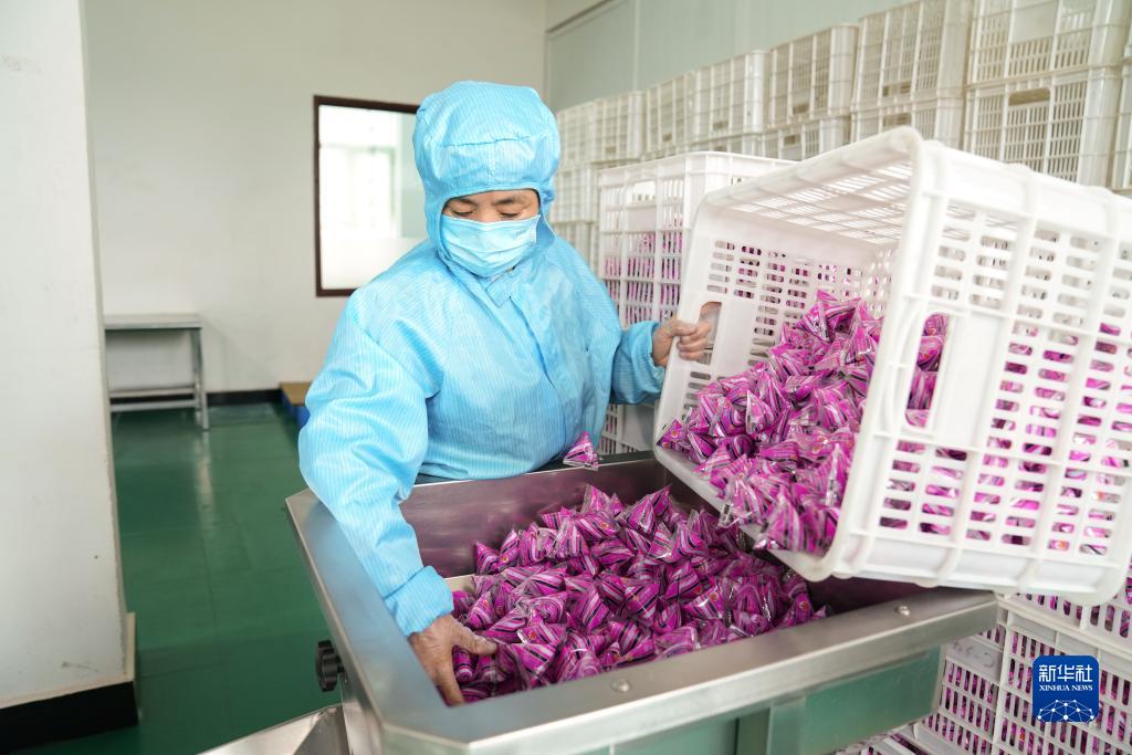 在黑龍江省大興安嶺地區加格達奇區一家山野珍品科技開發企業,工人對林下綠色有機食品進行加工作業(8月24日攝)。