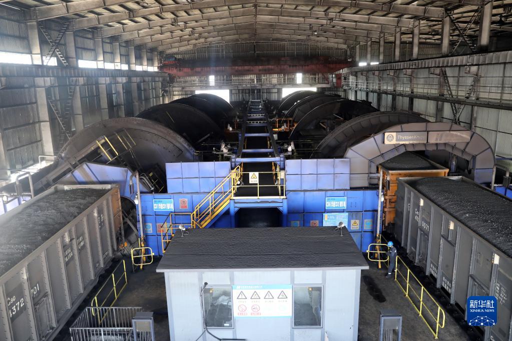 8月25日,在唐山港曹妃甸港區翻車機房,翻車機在進行煤炭卸車作業。